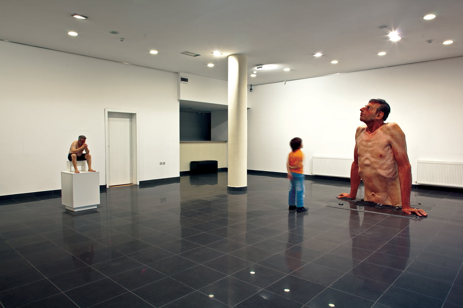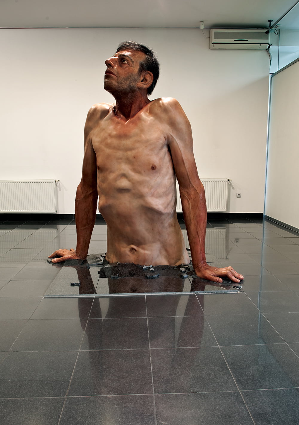 The story told by each individual figure starts with the resilience of man emerging from the ground (defined as mother-earth or environment) which, through/with the collective subconscious (a metaphor contained in the historic imaginary figure), come together in the tension and uncertainty reflected in the “small” character (the author, the creator). In all of them together, as in every individual portrait, in different ways there is a strong reflection (even poetic) of dramatic tension which suggests anticipation, and the psychological moment is underlined in relation to the usual hyper-realistic process of strict photographic, unemotional depiction and interpretation.For more info